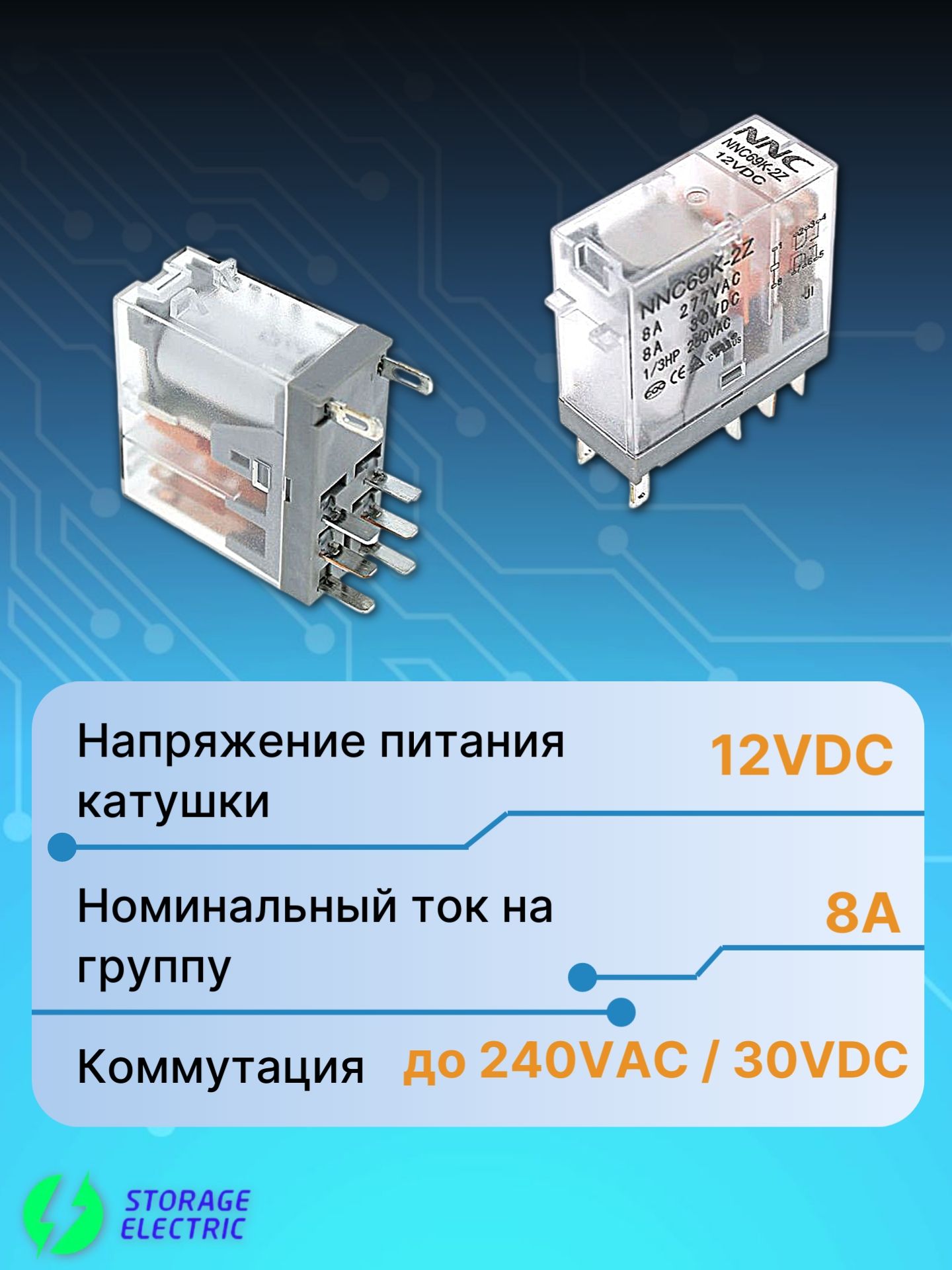 Промежуточное электромеханическое реле NNC69K-2Z 12VDC предназначено для передачи и преобразования сигналов в электрических цепях. Используется в качестве вспомогательного элемента для управления другими устройствами, такими как контакторы, пускатели или более мощные реле.
