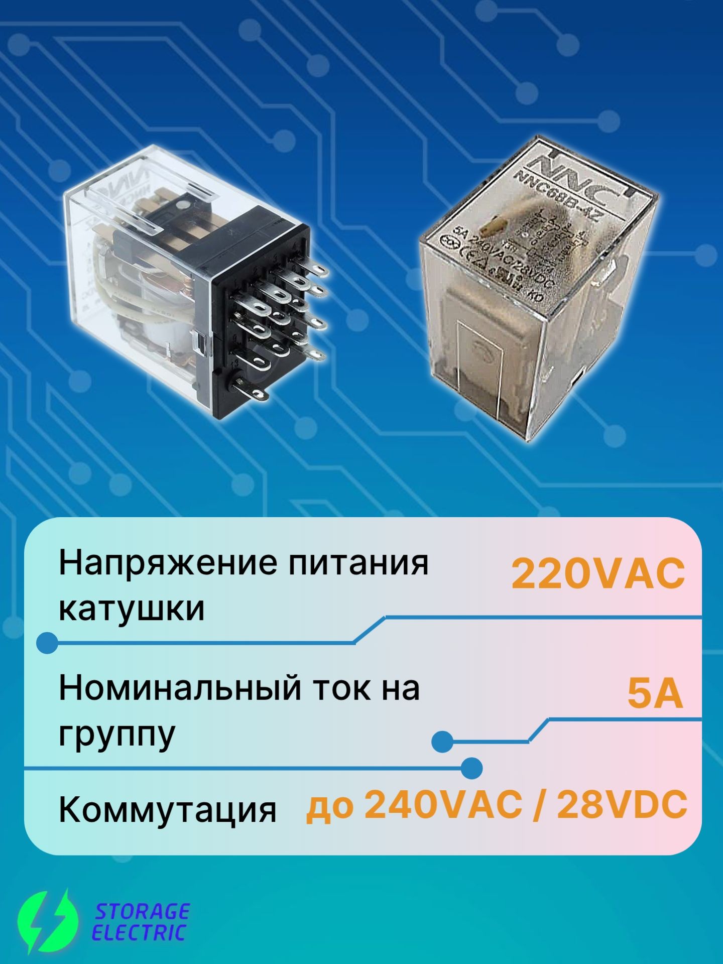Промежуточное электромеханическое реле NNC68B-4Z-220VAC предназначено для передачи и преобразования сигналов в электрических цепях. Используется в качестве вспомогательного элемента для управления другими устройствами, такими как контакторы, пускатели или более мощные реле. Реле на DIN-рейку поставляется в комплекте с колодкой, табличкой для маркировки и держателем реле. Легко монтируется как на DIN-рейку, так и на панель.