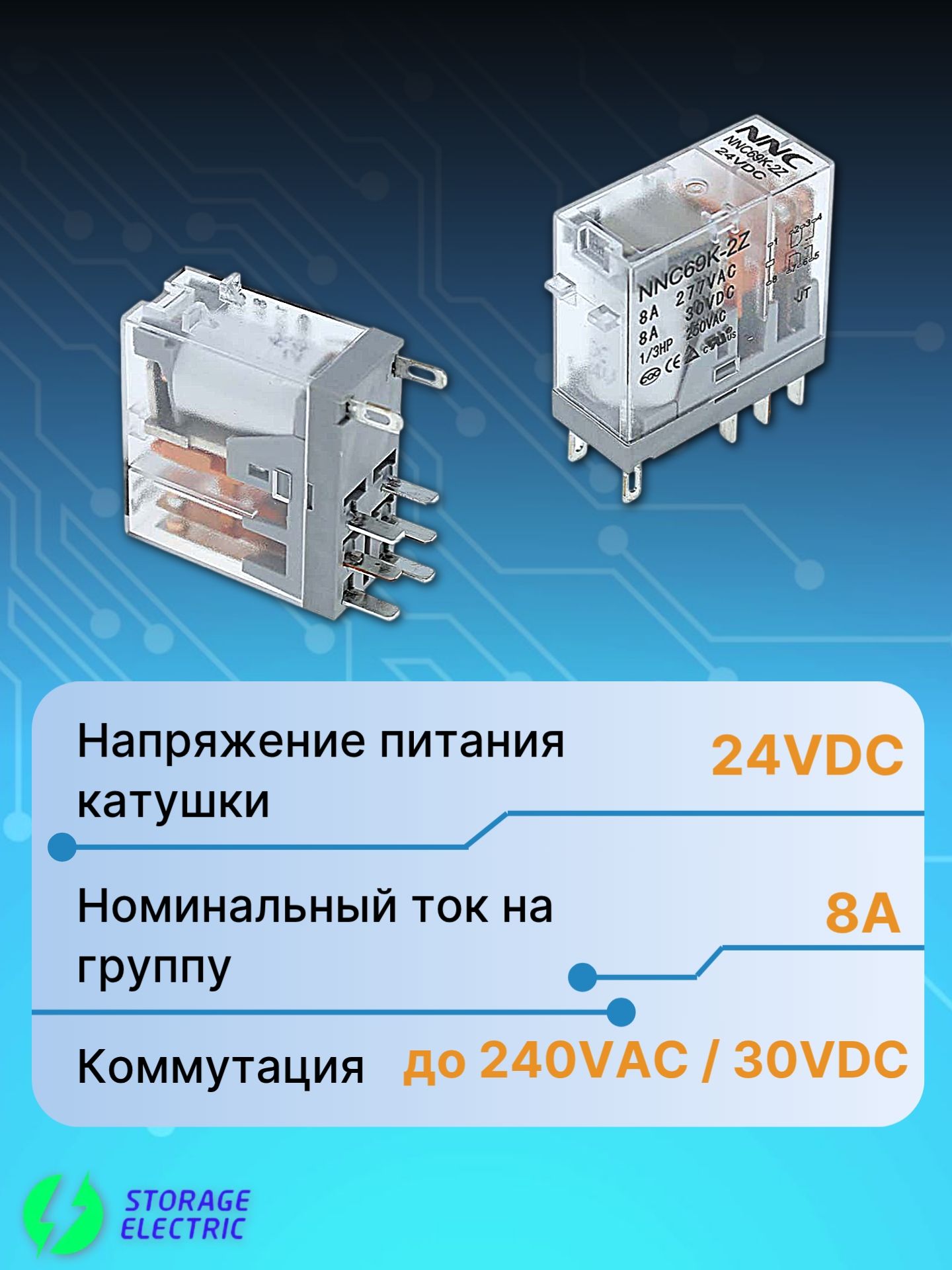 Промежуточное электромеханическое реле NNC69K-2Z 24VDC предназначено для передачи и преобразования сигналов в электрических цепях. Используется в качестве вспомогательного элемента для управления другими устройствами, такими как контакторы, пускатели или более мощные реле.