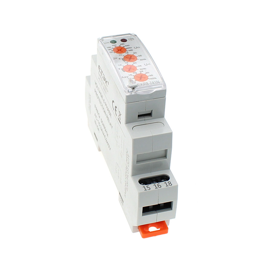 Функции: контроль обрыва фазы, последовательности фаз, перенапряжения, пониженного напряжения и асимметрии в диапазоне 5–15%.